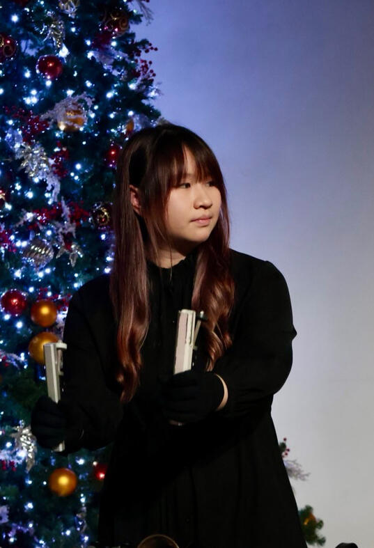 Rhine Wong stepped on her journey with handchimes and handbells in 2011 and 2015. In 2017, she joined the Hong Kong Youth Handbell Ensemble and learned from Ms. Emily and Ms. Joyce Lo. Apart from local performances, she has followed the team to Australia, Finland and Estonia and gained precious experiences through the interaction with handbell groups all around the world.“I spend most of my music time in fantasies.”Since Rhine started to learn the piano and handchimes, she has been thinking, “What if we add a few more notes here?” And when she listened to traditional hymns at church, she thought, “Would more people like hymns if they are rearranged to other styles?” Rhine started her own handbell arrangement series of reimagining traditional hymns. The first two songs in the series are The Deer’s Fantasy (As the Deer) and Because He Lives, which are performed in this concert.Rhine’s original handbell music Glocken-Spiel! (Bell-Play!) was performed in Bellaholics’ 2024 Christmas concert “Celebration”. The piece completely shows her energy and imagination. The song is uploaded to Bellaholics’ Youtube channel.